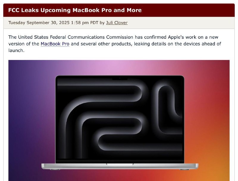 Новый MacBook Pro может быть презентован уже в ближайшие недели. Федеральная комиссия по связи США (FCC) опубликовала документы с новыми моделями. Часто Apple подает бумаги в FCC прямо перед анонсом, так что если вы планируете обновление MacBook, лучше поторопиться с решением. Кроме ноутбуков, также ожидаются новые iPad Pro с чипом M5 и поддержкой стандарта Wi-Fi 7. Для более подробной информации посмотрите ключевые обновления. Постмейкер - автоматическое ведение канала 🤖 Анимация | СhatGPT-4 | Помощь с резюме