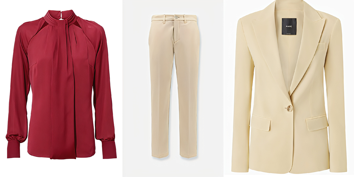 Самый безопасный старт. Возьмите свой привычный комплект — допустим, бежевые брюки и белая блуза. Добавьте вишнёвый шарф. Или небесно-голубую сумку. Всё, образ заиграл по-новому.