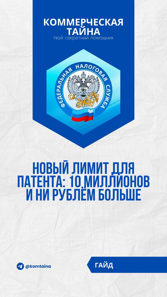 ⚠️ Новый лимит для патента: 10 миллионов и ни рублём больше