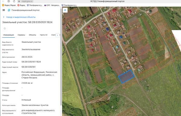 Название: Земельный участок из земель населенных пунктов с кадастровым номером 58:28:0350101:1824, общей площадью 2634 кв.м., с видом