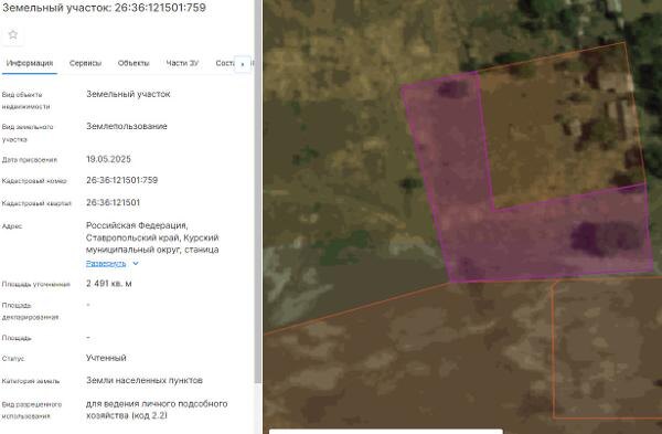 Название: Земельный участок с кадастровым номером 26:36:121501:759 площадь 2491 по адресу Российская Федерация, Ставропольский край, Курский