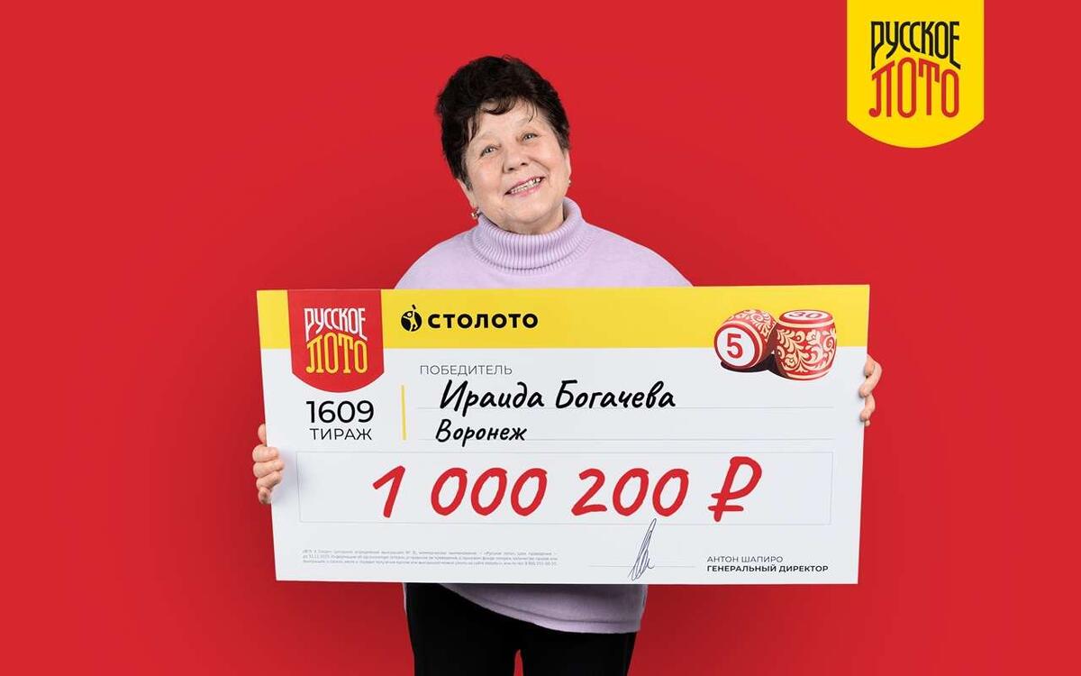 Женщина из Воронежа долгое время не подозревала, что выиграла крупную сумму в лотерею «Русское лото». Лишь позже выяснилось, что ей достался выигрыш в размере миллиона рублей, о чём стало известно от представителей компании «Столото» 1 октября. Участие в лотерее для Иради Богачевой давно привычное дело — она регулярно приобретает билеты в специализированных торговых точках. Однажды зайдя в лотерейный павильон, спросила у продавца, часто ли здесь разыгрываются крупные призы, после чего приобрела сразу два билета, один из которых принес удачу. «В день розыгрыша я следила за программой „У нас выигрывают!“ по телевидению. Проверив номера своего билета после завершения трансляции, обнаружила совпадение чисел и поняла, что мой билет выиграл, однако сумма выигрыша оставалась неизвестна», — поделилась воспоминаниями счастливая победительница. После передачи билет был прикреплён на холодильник, а проверку результата она отложила до другого дня. Несколько суток спустя посетила пункт продажи биле
