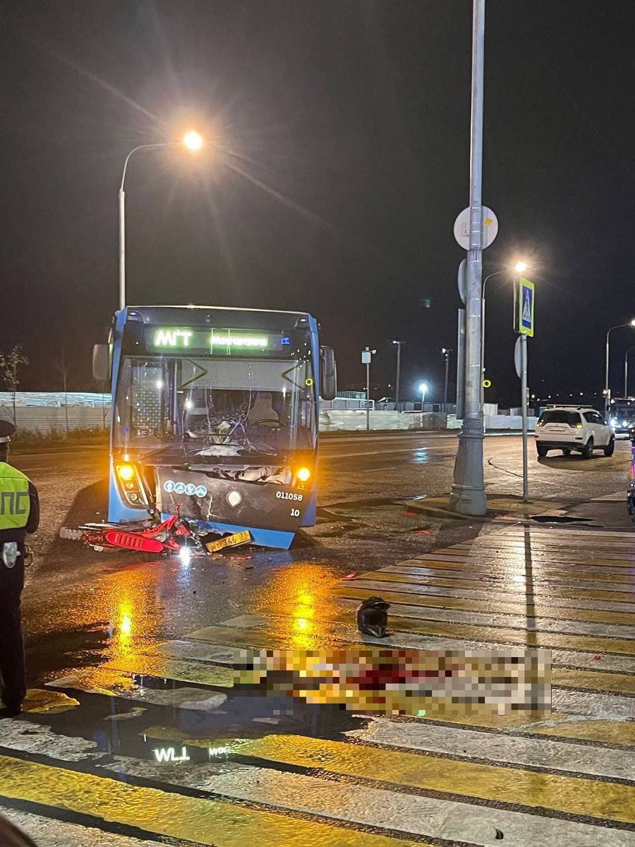 📩📤📥📨✉️Вчера вечером в соседнем Троицке на улице Академика Франка(ТиНАО) автобус заезжающий в автобусный парк совершил столкновение с несовершеннолетним питбайкером. По словам очевидцев, питбайкер погиб.
