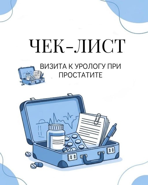 ЧЕК ЛИСТ ВИЗИТА К УРОЛОГУ ПРИ ПРОСТАТИТЕ: 🩷 Собираем «чемоданчик здоровья»: Эта подготовка сэкономит время и поможет сложить пазл симптомов в точную картину. 1. «Аптечка». Выпишите все лекарства — рецептурные, витамины, БАДы, обезболивающие. 2. История в бумагах. Старые анализы (кровь, УЗИ) — ценны даже спустя годы. 3. «Дневник туалета» на 2 дня. Отмечайте: * Время мочеиспускания * Примерный объем * Силу позыва (1-5) * Подтекания 🩷Формируем список вопросов — главный инструмент на приеме: ❓ о диагнозе: * «На чем основан диагноз? Только ли аденома?» * «Какие обследования нужны в первую очередь?» * «Нужен ли ПСА в моем случае и что значит результат?» * «Как часто нужен контроль?» ❓ о лечении: * «Какой план лечения вы рекомендуете и почему?» * «Какие есть варианты — от таблеток до малотравматичных методов?» * «Что изменить в образе жизни?» * «Можно ли избежать операции?» ❓ о последствиях: * «Чем грозит бездействие?» * «Как лечение повлияет на сексуальную
