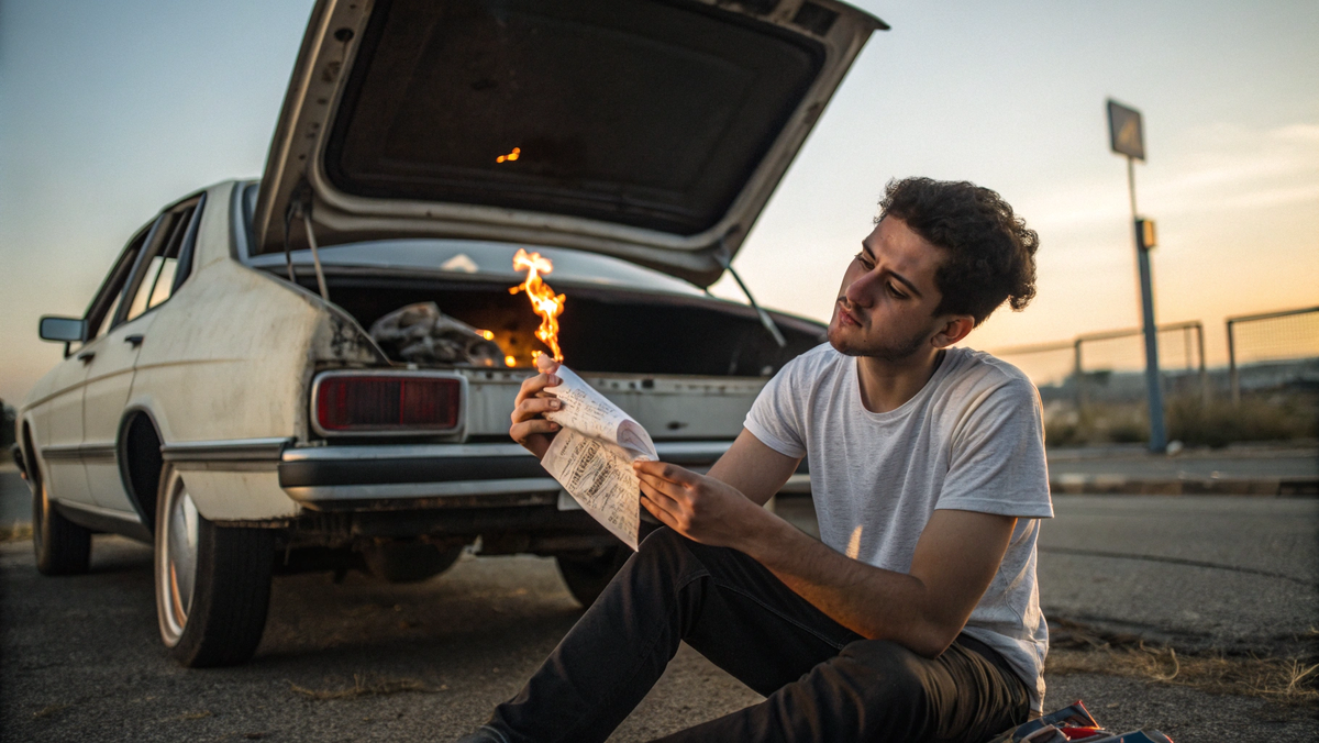 Алексей медленно, аккуратно, разорвал листок пополам. Потом ещё и ещё. Он скатал из обрывков неплотный шарик, достал зажигалку и поджёг край. Бумага вспыхнула, жарко обжигая пальцы. Он держал её, пока огонь не начал лизать кожу, и только тогда бросил тлеющие остатки в лужу у колеса.