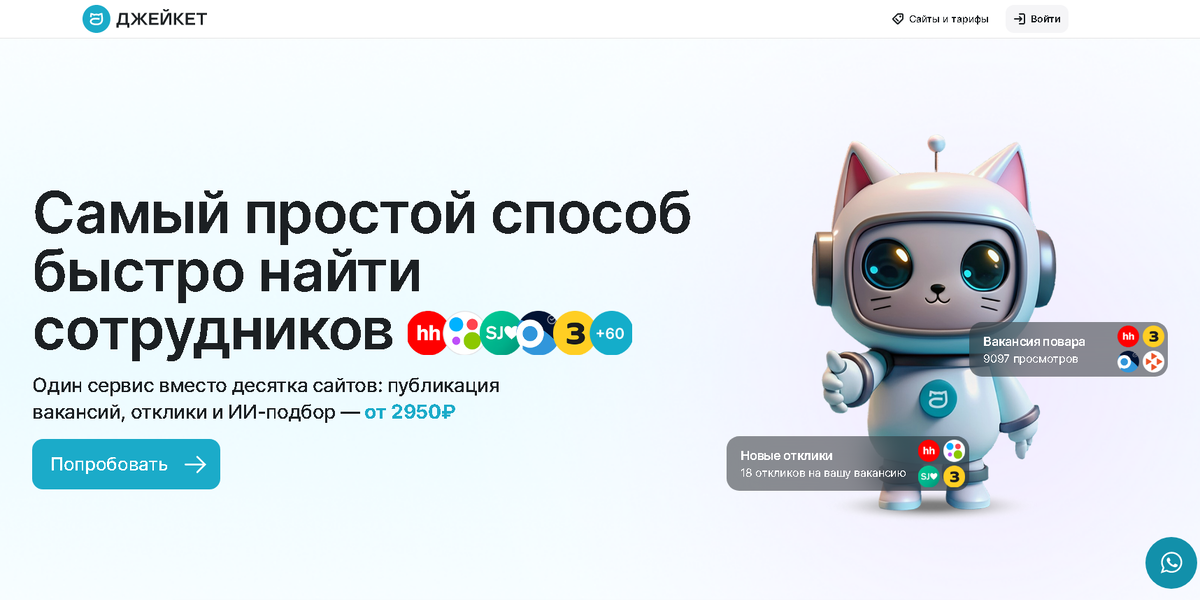 jcat — это современный сервис для размещения вакансий и поиска сотрудников. Он создан, чтобы облегчить жизнь тем, кто охотится за талантами и мечтает о быстром и эффективном решении задач рекрутинга. За счет современных технологий jcat позволяет не только находить подходящих сотрудников, но и делать это с минимальными затратами времен и усилий.