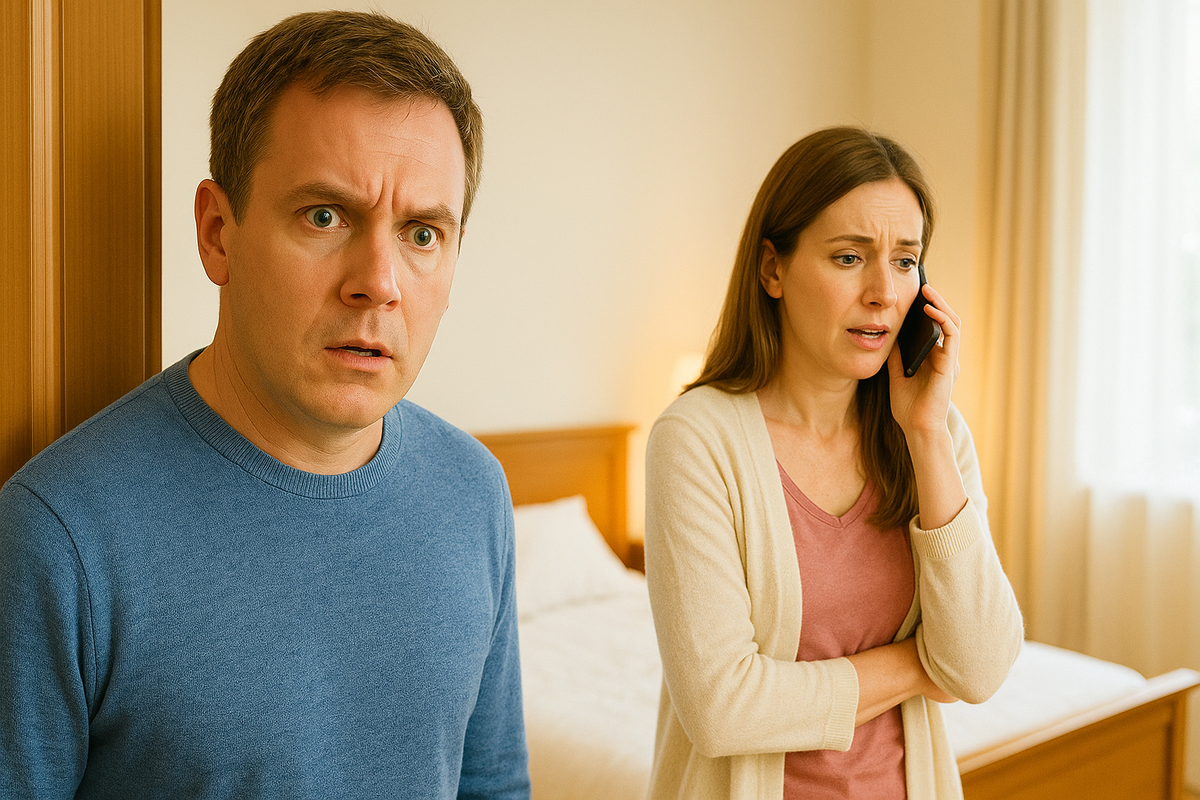 Жена стояла у окна, держа телефон обеими руками. Лицо серьёзное, голос дрожал: