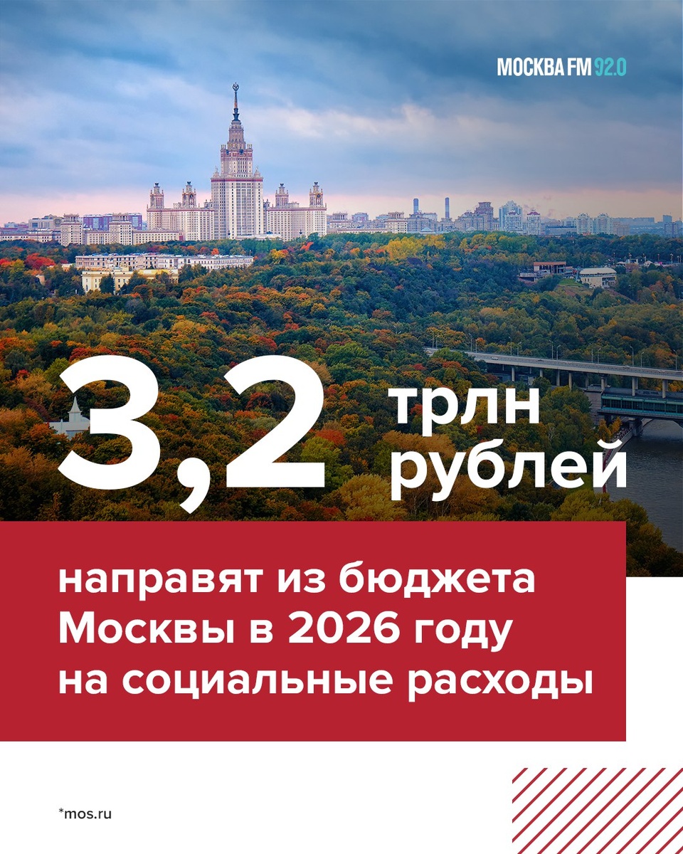 🏙 Собянин: Социальные расходы в 2026 году составят половину городского бюджета Мэр Москвы внёс в Мосгордуму проект закона города Москвы «О бюджете города Москвы на 2026 год и плановый период 2027 и 2028 годов». В проекте бюджета предусмотрены средства на индексацию социальных выплат, увеличение фондов оплаты труда работников бюджетной сферы, дальнейшее повышение качества предоставляемых услуг населению, реализацию проектов по созданию новых производств, развитие городской инфраструктуры. 🔹 Подробности о принятом бюджете столицы здесь. 📌 Подписаться на Москва FM / Наш чат-бот / Мы в MAX