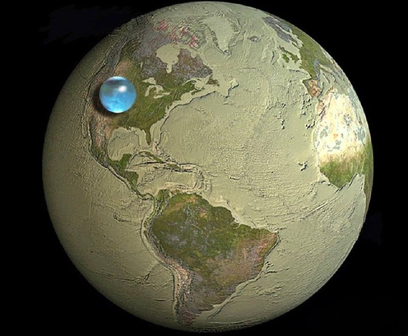 Вся вода планеты Земля • Объем: около 1.335 миллиарда кубических километров. • Диаметр водного шара: ~1380 км. • Диаметр Земли: ~12 742 км. Это означает, что если бы наша планета была бы гладким шаром, весь этот объем воды покрыл бы ее слоем глубиной около 2,7 километров. «Щукин и всё»