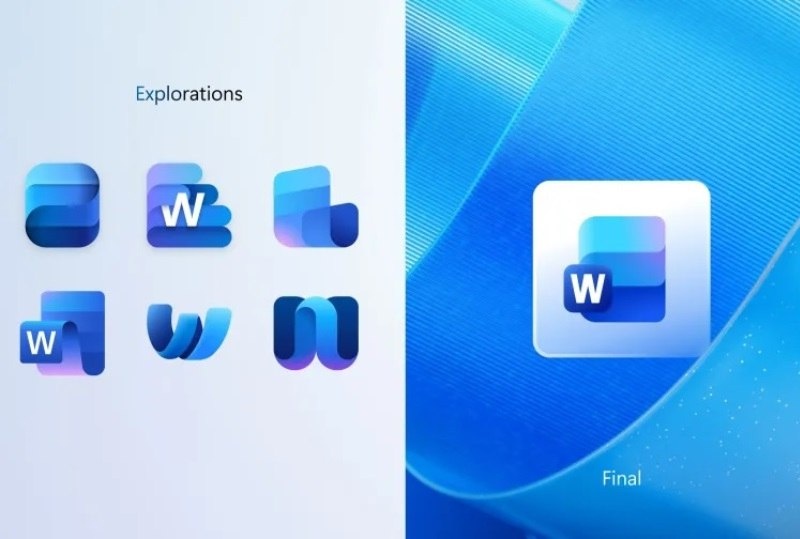 Microsoft продемонстрировала иконки, которые могли бы использоваться для Word, Excel и PowerPoint, но в итоге не были приняты