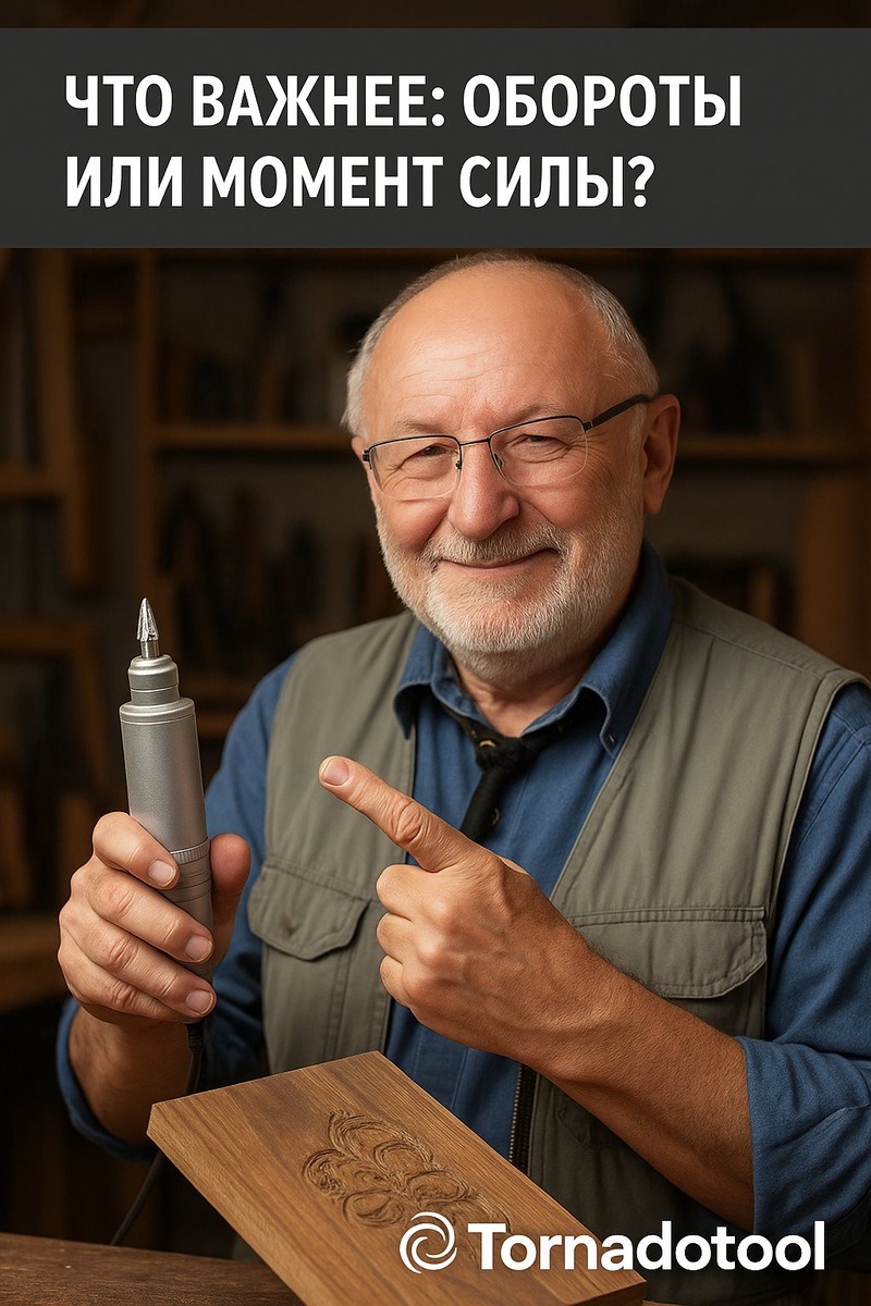 Что важнее: обороты или момент силы? ⚙️ Многие выбирают гравер по числу оборотов — чем больше, тем лучше? Не совсем. Если мотор крутится быстро, но не тянет под нагрузкой — толку мало. Главное — не скорость, а сила! 👉 Крутящий момент — это то, что позволяет граверу не останавливаться, когда фреза входит в дерево или металл. 🔹 При низком моменте инструмент «захлёбывается» даже при 30 000 об/мин. 🔹 При высоком моменте Tornadotool стабильно режет на 5000 об/мин — без дыма, без рывков, с идеальным контролем. 💡 Вывод: для качественной работы выбирай гравер с сильным мотором, а не с громкими цифрами на коробке. Tornadotool — сила на низких оборотах.