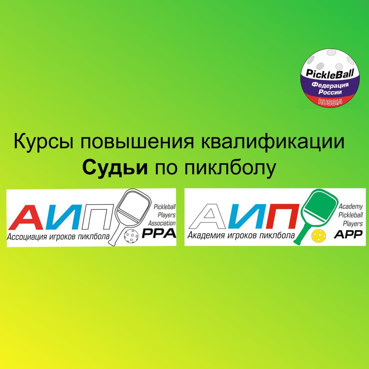 🌟ФПР и АИП подготовили Курс Судьи на турнире по пиклболу. 📍Курс предназначен для ознакомления, обучения и стандартизации работы судей турниров по пиклболу. 👉Курс предусматривает практические уроки по подготовке к турниру, проведению турнира, действий после окончания турнира. 👉Курс также объясняет основные принципы взаимодействия судьи с игроками, Главным судьей. 👉В курсе имеются чек листы по подготовке и проведению турнира, справочная документация - регламент турнира, протоколы, бланки. 👉 ссылка на курс - https://stepik.org/251461 🗒Обучение проводится онлайн в виде уроков и тестов к ним. После успешного прохождения тестов выдается сертификат и удостоверение.