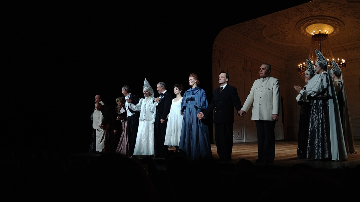 Новость о постановке "Женитьбы" в театре Моссовета меня заинтересовала сразу. Однако прошло полгода, прежде чем мы добрались до нее. Что делать! В театрах Москвы столько всего интересного, что спектакли приходится в очередь выстраивать, чтобы посмотреть всё, что хочется, и ничего не забыть)) Спектакль Евгения Марчелли сочетает и современную, и классическую подачу. С одной стороны - нет отступлений от текста, никаких попыток его осовременить - уже спасибо! Костюмы очень хороши. Не то, чтобы все строго по эпохе - ну насколько я могу судить! - но все красиво, гармонично и смотрится вполне естественно для этой пьесы. С другой стороны - робот-пылесос. Спектакль еще не начался, а он уже бесшумно ездит по сцене. Актеры вышли, а он всё так же ездит. И вот я вместо того, чтобы вслушиваться в диалог - довольно вялый и занудный, кстати! - Подколёсина со слугой, завороженно слежу за перемещениями пылесоса и думаю, например, о том, управляет ли им кто-то или он ездит по произвольной траектории. И