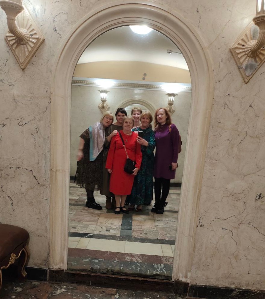 15 октября 2025 года Здравствуйте, друзья! Воскресным вечером мы с подругами большой компанией посмотрели спектакль театра "Ромэн" "Поющие струны души". А перед спектаклем ещё и перуанский ресторан посетили. Про ресторан будет ссылка в конце статьи, а сейчас про спектакль. В старинное здание театра мы пришли как обычно заблаговременно, ещё раз восхитились его интерьерами, ну и традиционное фото в зеркале тоже сделать не забыли. Настроение у всех было приподнятое, хотя в ресторане пили в основном перуанский чай. Публика собиралась не шатко не валко, сначала даже казалось, что спектакль пройдёт при полупустом зале, но этого, к счастью, не случилось. К третьему звонку народ подтянулся, и зал оказался заполненным примерно на 40%, на мой взгляд, мои же спутницы сочли, что больше, чем наполовину. Но те зрители, что всё же пришли в театр, принимали артистов очень тепло. Аплодисменты и возгласы "браво" раздавались после каждого эпизода, особенно после зажигательных цыганских танцев и песен. Эт