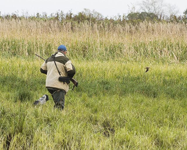 10. При работе по птице продолжается тренировка остановки. И точно также заброс птицы, поноски или мячика в другую сторону легко отвлекает собаку от гоньбы птицы. Подача только по команде. Активно используется стартовый пистолет в процессе натаски. Охотиться можно только с отлично останавливающейся собакой, а для этого ее нужно очень хорошо подготовить.