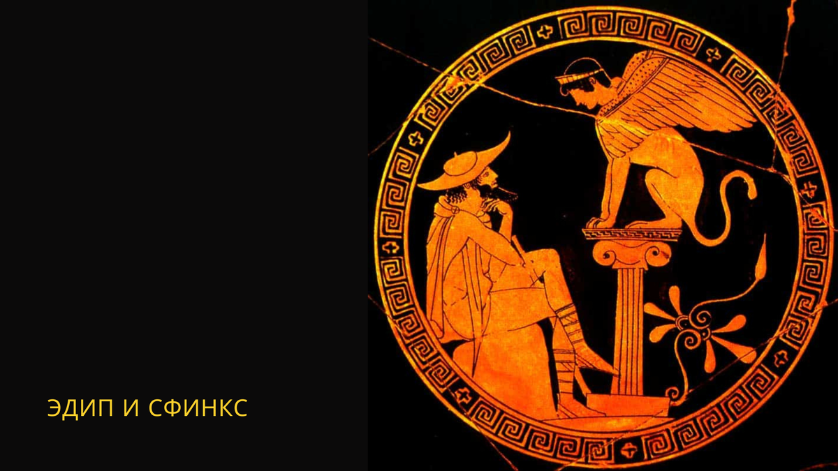 Эдип продолжает путь. На подходе к Фивам, он встречает сфинкса, которого мы обычно представляем мальчиком, по аналогии с известной египетской статуей, а у греков он - девочка.