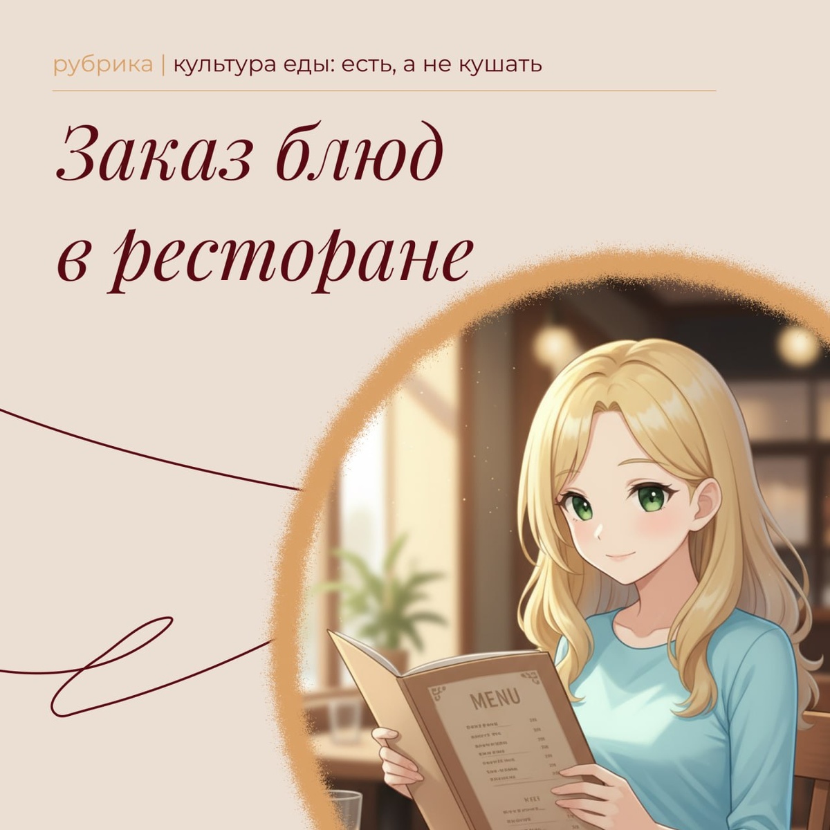 Добрый день, друзья! Обсуждая современный этикет, невозможно пройти стороной манеры поведения за столом. От того, как вы ведёте себя за столом, зависит отношение к вам коллег, партнёров и другого важного круга лиц. Сегодня мне бы хотелось обсудить с вами заказ блюд. В меню хорошего ресторана, как правило, есть указания на компоненты, которые могут не подойти аллергикам, предупреждения об остроте блюд и других особенностях кухни. Официант всегда к вашим услугам и готов дать советы по меню и размерам блюд 🤵🏻♂️ Мне довольно часто приходится видеть в российских ресторанах такую картину: девушка устраивает «допрос с пристрастием» официанту по каждой строке меню, выспрашивая подробный состав блюд, их ингредиенты, а когда «допрос» окончен, она говорит: «Приготовьте мне так-то и так-то» (без этого компонента, с другим гарниром, соусом, не жарьте, не добавляйте зелень, уберите этот лист из салата… и так далее и тому подобное). Диалог может длиться очень долго, официант в стрессе, другие го