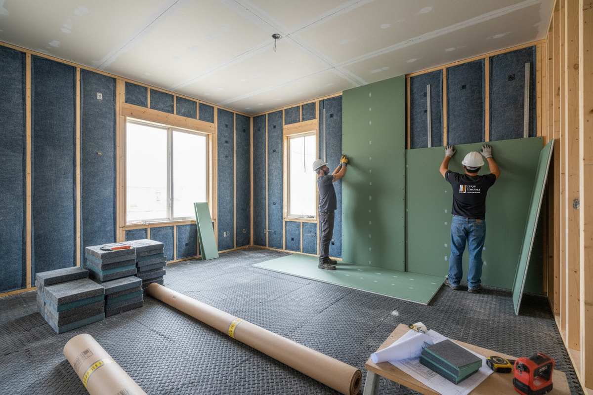- Комплексный подход: Шумоизоляция должна быть выполнена на всех уровнях - от фундамента до крыши. Все элементы конструкции должны быть изолированы для максимального эффекта.
