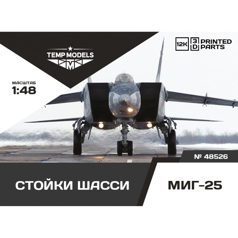 Тemp Мodels из Москвы выпустила на 3D-принтере стойки шасси для моделей МиГ-25 в масштабе 1/48 с армированием в трех плоскостях: СТОЙКИ ШАССИ МИГ-25 (каталожный номер 48526)