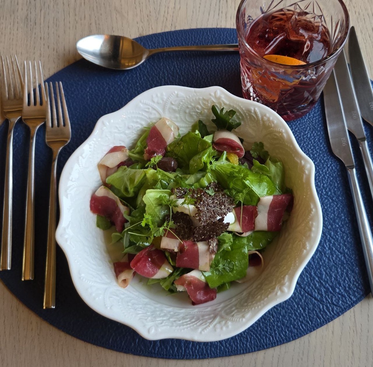 Осень в самом разгаре! Пронизывающий ветер, ледяной дождь и отсутствие солнца провоцируют шеф-поваров создавать вкусные согревающие новинки основного меню. Мы с Овцой Борисом решили попробовать некоторые новые позиции в ресторане YURA отеля StandArt. На закуску взяли Салат с копченой уткой и вяленым виноградом (1250 руб.) – идеальный салат во всех отношениях. Зелени много, апельсиново-горчичный соус прекрасен, а виноград, выпаренный в вине и немного дегидратированный для вяленой консистенции, является как раз той самой изюминкой, в прямом смысле слова 👍 Горячий Тыквенный суп с гуанчале и кедровыми орешками (790 руб.) – не вызвал бешеного восторга, но это точно идеальный согревающий суп в промозглую погоду, как сейчас. Равиоли с копченой рикоттой и трюфелем (1690 руб.) – по сути это пельмени, но они такие легкие и воздушные, что можно запросто считать за ЗОЖ еду и съесть две порции сразу 😜 Не являясь поклонниками, почему-то на основное блюдо взяли Томленые говяжьи щечки с пюре из