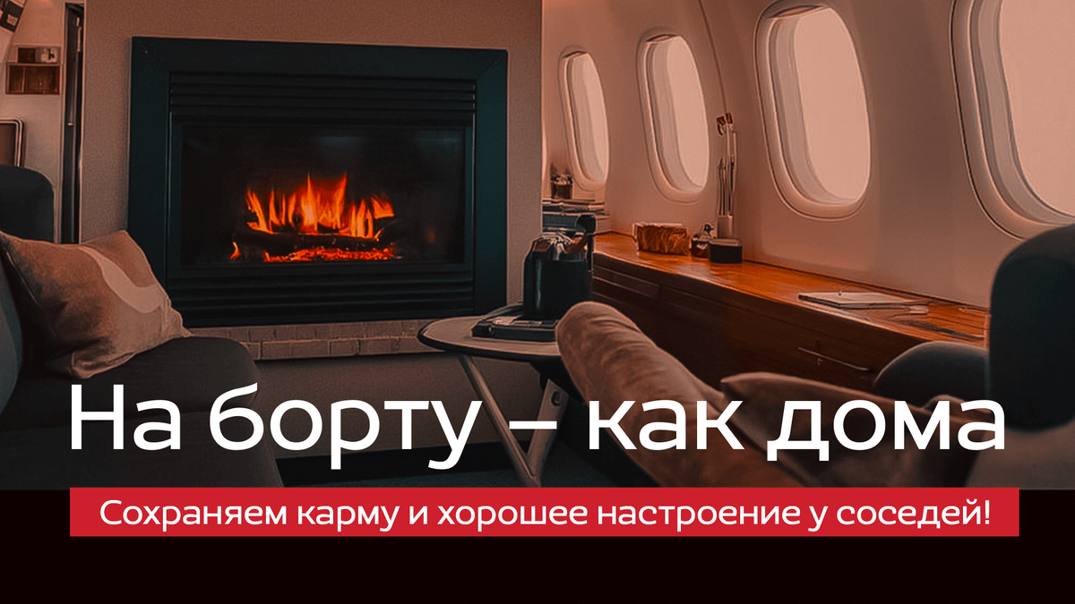 Иногда ловишь себя на мысли: а ведь неплохо было бы повесить в самолёте таблички, как в родном подъезде: «Не мусорите», «Не шумите под окнами», «Уважайте соседей!» и т.п. Ведь что такое самолёт? Это концентрат человеческих привычек, фобий и характеров в «алюминиевой банке» и на высоте десять тысяч метров. Это микромир, где на несколько часов люди становятся соседями – волей билета, а не судьбы. И каждый раз, когда оказываешься в этом металлическом улье, думаешь: если бы можно было писать объявления в самолёте, они выглядели бы так... Я не музыкальный инструмент, и ритм ваших пальцев, а тем более ножек вашего дорогого чада по моим позвонкам не добавляет мне радости. У подлокотника нет хозяина. Нет флага и герба. Это ничейная полоса между нашими личными пространствами. Давайте заключим пакт о взаимном уважении: по полподлокотника каждому, и никто не пострадает. А лучше придерживайтесь правила ⬆️ Да, они длинные, шелковистые, эффектные. Но я не хочу проводить весь полёт в вашей причёске.
