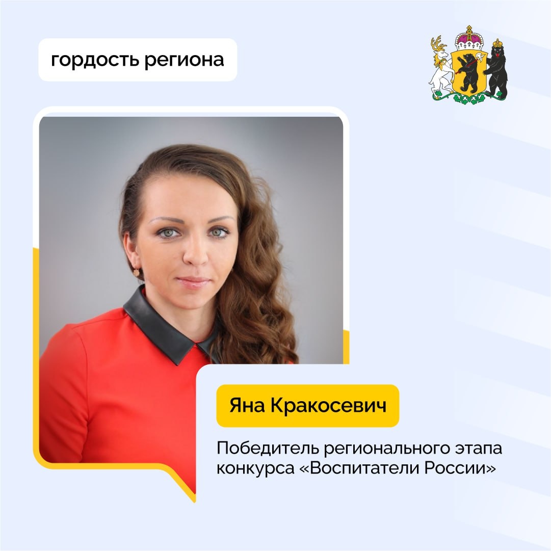 🏆 Воспитатель из Рыбинска победила в региональном этапе конкурса «Воспитатели России»! Поздравляем с блестящей победой! Инструктор по физической культуре рыбинского образовательного комплекса «Взлет» Яна Кракосевич стала лучшей в региональном этапе XIII Всероссийского конкурса «Воспитатели России»! 🎉 Яна одержала победу в номинации «Лучшая практика по раскрытию потенциала и развитию талантов ребенка в детском саду». Её инновационные подходы к работе с воспитанниками детского сада №113 покорили жюри. Теперь ей предстоит защищать честь Ярославской области на федеральном финале! Пожелаем Яне удачи и новых побед! 💪 Гордимся, что в нашем регионе работают такие увлеченные и талантливые педагоги! Вы — настоящие герои!