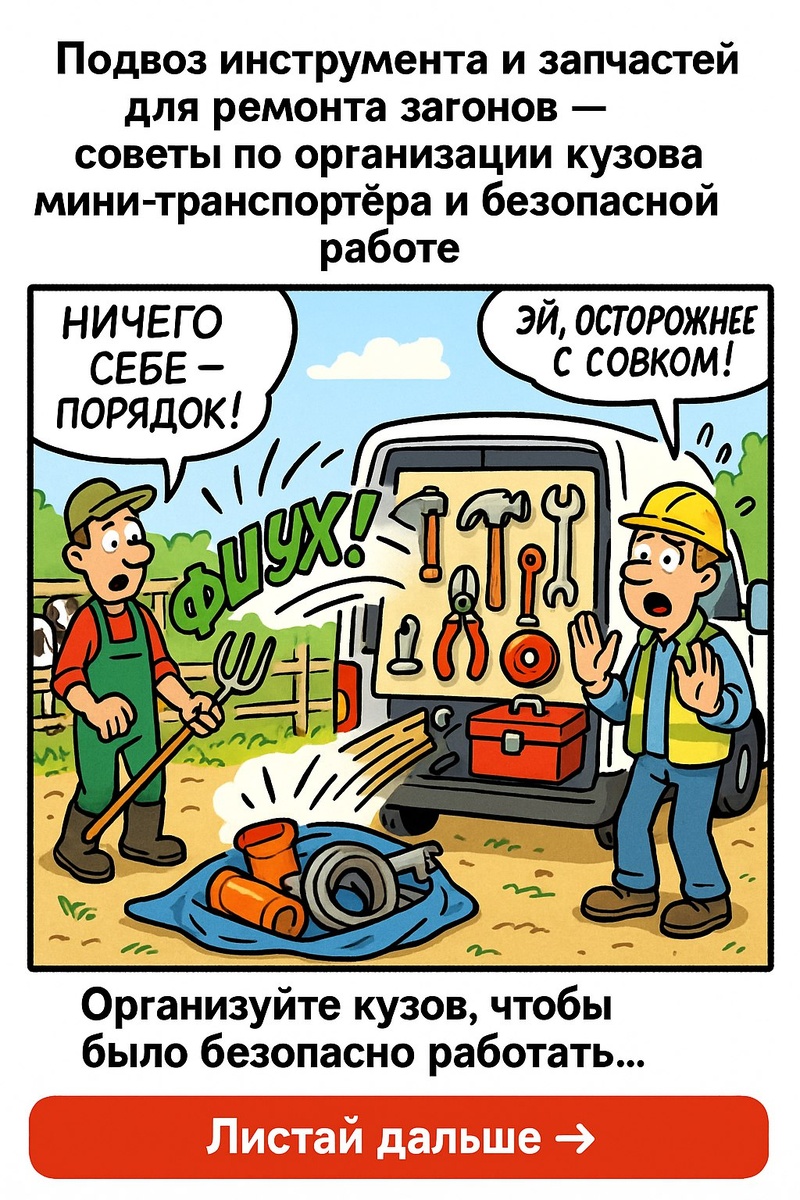 🚜 Механизация ремонта загонов: как сэкономить время и силы Мини-транспортёры с органайзерами - идеальны для доставки инструментов и запчастей в узких проходах без повреждения пола. Они обеспечивают мобильность, компактное хранение и быстрый доступ к расходникам. До 3-4 раз экономии времени, грузоподъёмность 300–800 кг, ширина до 1200 мм, возможность работы как внутри помещений, так и на улице. Один оператор на мини-транспортёре заменяет целую бригаду, сокращая затраты на персонал и снижая количество простоев. Электропривод позволяет работать без шума и запаха, а шины низкого давления не портят коровники. Выбирайте технику с учетом ширины, грузоподъёмности и типа хода - колёса или гусеницы. Важна хорошая проходимость даже на уклонах до 20°, а также наличие органайзеров для быстрого переключения между задачами. Сохрани материал и покажи коллегам - пусть бригада работает лучше и без усталости! 🎯 #ремонт #сельхозтехника #минитехника #организацияработы #безопасность #продуктивность