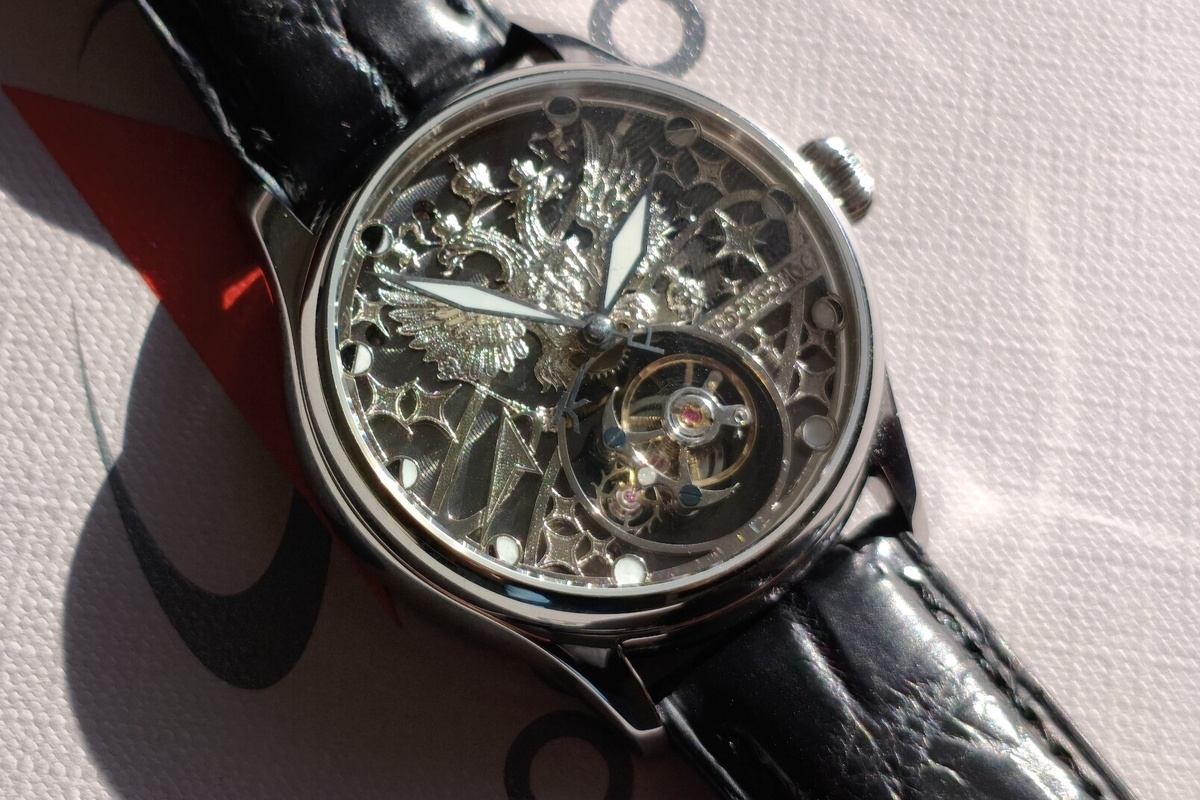 Пример создания наручных часов на заказ для Роскосмос. Техническая задача: Первый этап отрисовки циферблата с флагом России. Второй этап отрисовки циферблата с более свободными полями. 3-д моделирование циферблата. Финальное 3-д моделирование циферблата. Проработка задней крышки часов. 3-д печать пластикового циферблата. Отливка пробного циферблата в латуни. Варианты баклей и гравировки. Вид часов с люминофором – Superluminova Часовая коробка И как финал – сами часы Вот такие турбийоны у нас получились, что скажете?