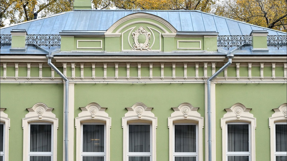Эти здания, соединённые переходом с зимним садом, не просто красивы — они имеют статус объекта культурного наследия и сегодня обслуживают дипломатический корпус. «Одно из главных украшений и наиболее выразительных элементов строения 1 — асимметрично расположенный эркер с волютообразными кронштейнами и фасадной лепниной. Похожие кронштейны можно увидеть и под переходом в проездной арке. Реставрация фасадов началась в 2024 году и к настоящему времени полностью завершена», — рассказал руководитель Департамента культурного наследия города Москвы Алексей Емельянов. Реставраторы проделали ювелирную работу: укрепили кирпичную кладку, бережно расчистили лепной декор от наслоений краски, привели в порядок штукатурные поверхности. Самой интересной находкой стал исторический светло-зелёный цвет фасадов, который обнаружили в процессе исследований и которому вернули первоначальный вид. Но изменения коснулись не только внешнего облика. Входные группы получили новые деревянные двери, выполненные по и
