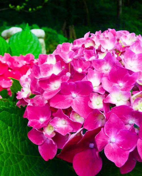 Гортензия Мармеладка (Marmalade) представляет собой разновидность крупнолистной гортензии, известной своими яркими цветами и декоративностью. Она формирует пышный кустарник высотой примерно 150 см с таким же диаметром кроны. Куст обладает веерообразной формой, украшенной яйцевидными листьями светлого зеленого оттенка, которые служат прекрасным фоном для эффектных цветов. Цветочные шапки гортензии Мармеладки имеют округлую форму диаметром от 20 до 25 см. Цветки обладают насыщенно малиновым оттенком, создавая яркий акцент среди зеленых листьев. Соцветия отличаются плотной структурой, состоящей из плоских махровых лепестков. Приятный аромат дополняет общую привлекательность растения.