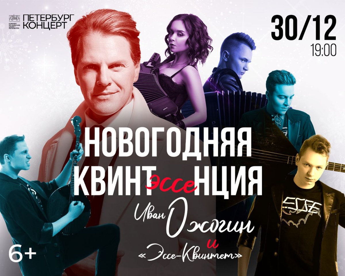 Билеты на «Новогоднюю КвинтЭссенцию» с Иваном Ожогиным и «Эссе-Квинтет» уже в продаже — успейте подарить себе настоящий праздник! 30 декабря золотой голос российских мюзиклов Иван Ожогин и уникальный коллектив «Петербург-концерта» — ансамбль национальных инструментов «Эссе-Квинтет» подарят петербуржцам восхитительную программу «Новогодняя КвинтЭссенция». Разноплановые композиции с любовью подобранные артистами для этого волшебного вечера подарят по-настоящему новогоднее настроение и перенесут вас в мир любимых предпраздничных историй. Ждем вас в Государственной академической капелле Санкт-Петербурга, где прозвучат мировые хиты инструментальной музыки в авторской аранжировке «Эссе-квинтета». Билеты: 30.12 | 19:00 | Новогодняя квинтэссенция