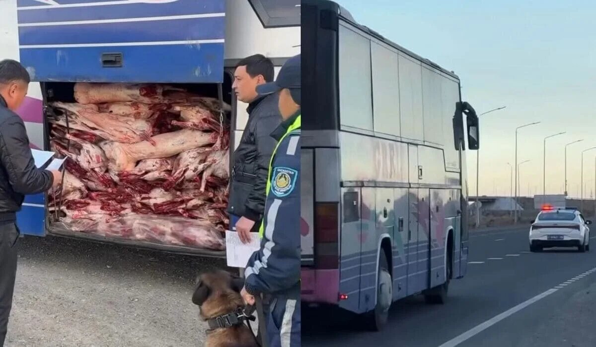 Пассажирский автобус с забитым мясом багажником задержали на трассе в Жетысу (ВИДЕО)