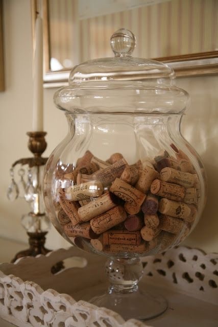 Винные пробки. У многих наверно видели, какую-нибудь емкость, где складируются винные пробки)?! Меня это тоже не обошло стороной) Выбросить как то рука не поднимается, что-то в них есть такое эстетически-притягательное. Сначала я их просто бросала в обычную вазу, потом купила специально для них вазу в виде огромного стакана. И вроде выглядит не плохо, особенно в осенних эко-тонах... Но все равно эта ваза так и не нашла места в моей не большой квартире и переехала ко мне на работу) Потом я все таки задалась вопросом, ну что такая красота простаивает просто так, нужно ее как-то приметить, а точнее что-то смастерить из этих самых пробок. В надежде на что-то такое же эстетичное, с моей точки зрения, как сами пробки, я начала судорожно лопатить инет в поиске идей, но ... тщетно... Все идеи мне казались какими-то пошлыми, "дешевыми", ну максимум на поделки в детский сад и то сомнительно. Попалось правда пара идей, но и то не могу точно сказать, что я хочу это прям сделать и уж тем более пов