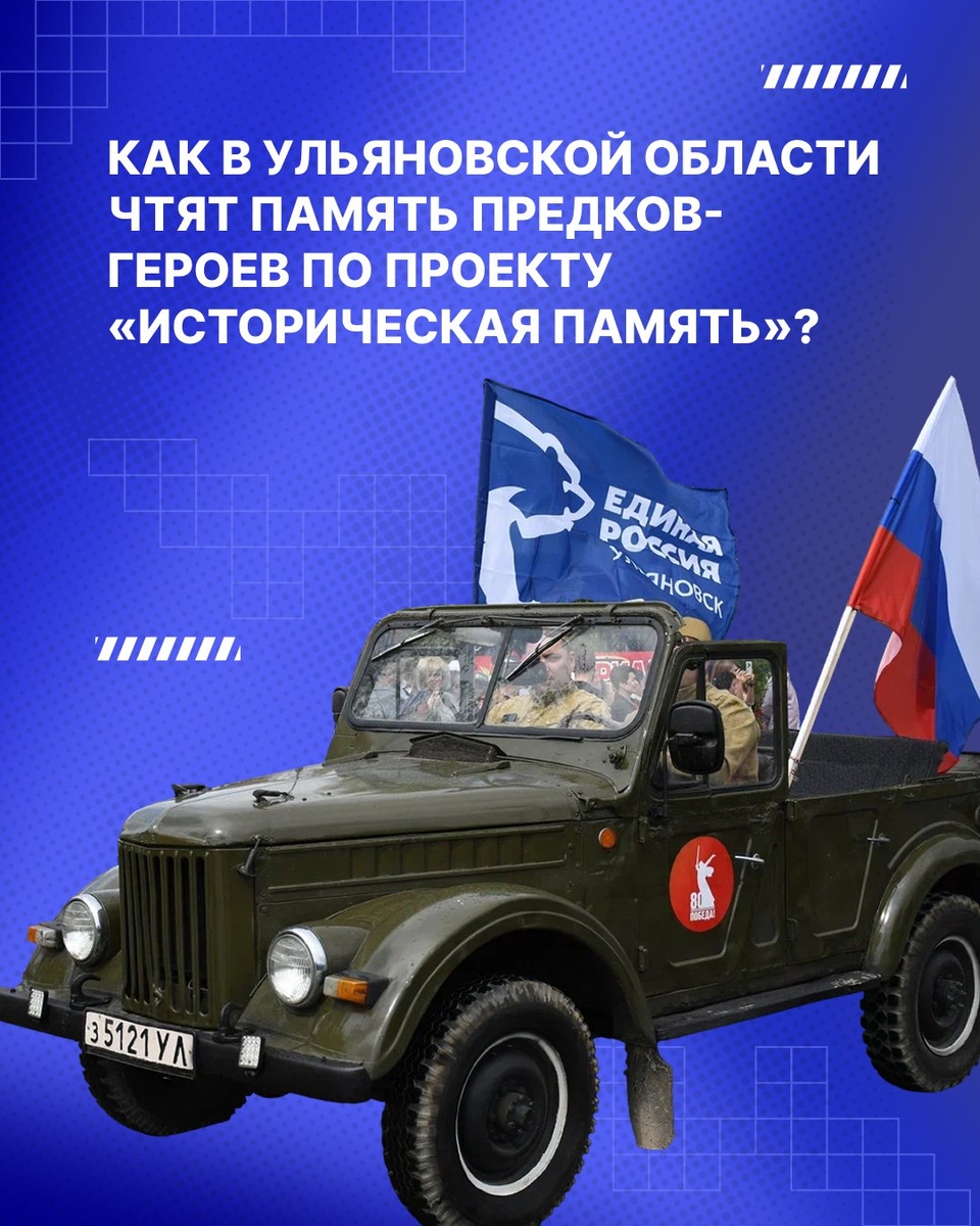 Патриотизм и гордость – главные лозунги нашей страны в год 80-летия Великой Победы!⭐ Масштабный комплекс мероприятий в Ульяновской области проводят по партийному проекту «Историческая память». Основной упор – на молодежь. Для нее проводят патриотические фестивали, спортивные мероприятия и уроки мужества. ➡️Больше о главных направлениях проекта – в карточках.