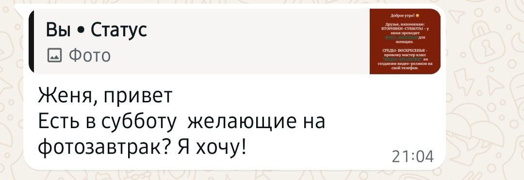 Если вы с нами, жмите Хочу на ФОТОЗАВТРАК с вами