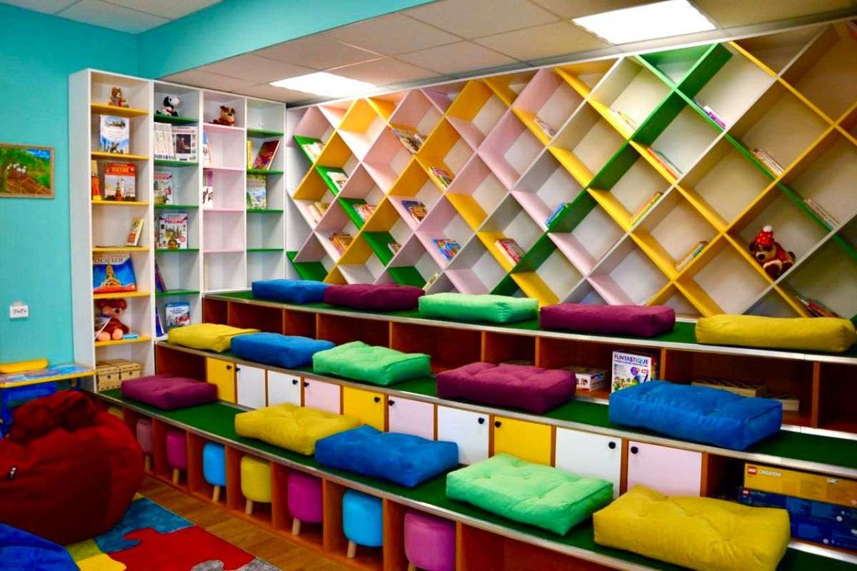 Современный многофункциональный центр создавался с учетом интересов разных возрастных групп. Особенно эффектно выглядит зона детского чтения и развлечений. Она многоярусная, оснащена широкоформатным экраном, проектором. Вся мебель — удобная и безопасная. Закуплены обучающие программы и игровые комплексы, например, «живой» пол, аэрохоккей, настольные игры и викторины.