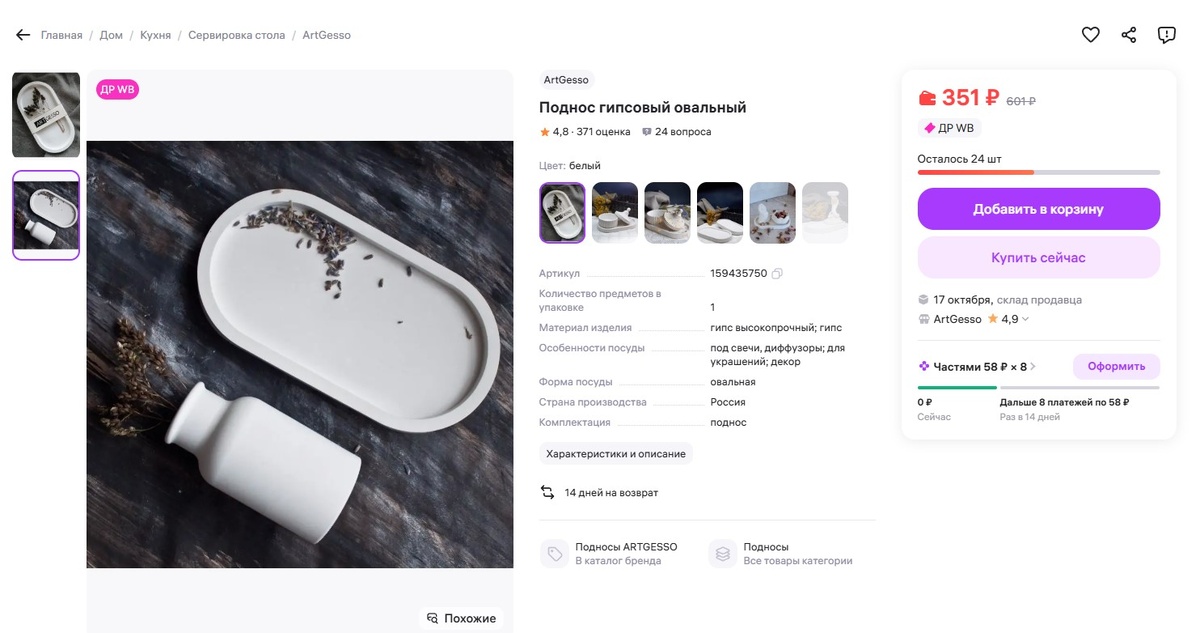 источником идей и хорошего настроения! Маленькие вещи способны менять настроение. Этот гипсовый поднос - как чистый холст для вашего вдохновения. На нём можно расставить кольца, ключи или аромасвечи. А если любите творить - покрасьте поднос акрилом под интерьер, он выдержит даже лёгкий контакт с водой.