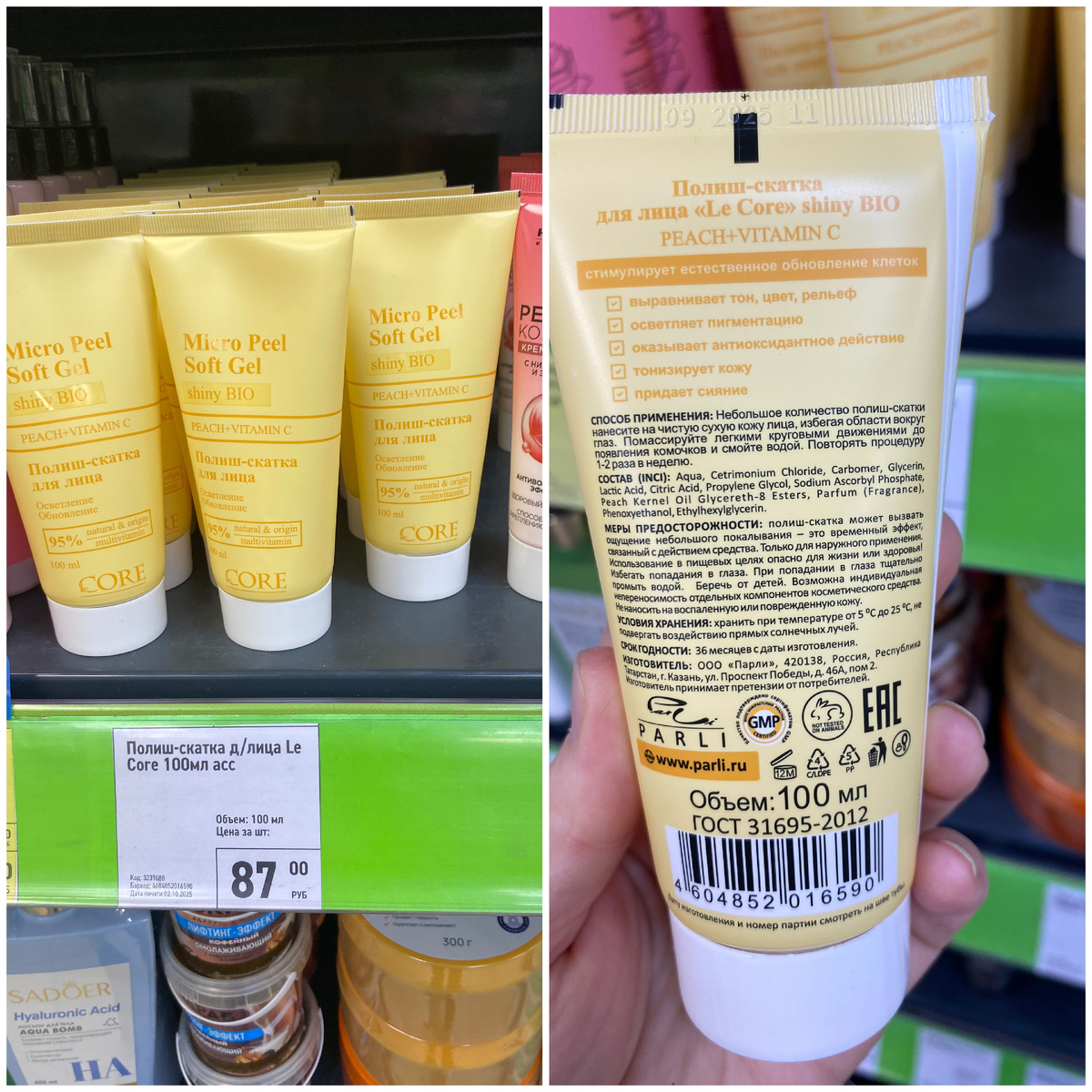 Всем привет. Меня зовут Наталья. Я очень рада видеть вас на своём канале. Сегодня мы с вами прогуляемся по магазину Фикс Прайс, который находится по адресу: город Йошкар-Ола, улица Красноармейская, дом 105. В этот раз я покажу самые роскошные новинки. Так что устраивайтесь поудобнее. Желаю всем приятного времяпровождения. Полиш-скатка для лица Le Core стоимостью 87 рублей. Её объём 100 мл. Страна изготовления Россия. Данная полиш-скатка выравнивает тон, цвет и рельеф кожи, осветляет пигментацию, оказывает антиоксидантное действие, тонизирует и придаёт сияние. Я себе купила такую, постараюсь в скором времени показать её в действии. Уксус прачечный для белья "GREENFIELD" стоимостью 99 рублей. Его объём 750 мл. Страна изготовления Россия. Прачечный уксус - это органический кондиционер, который бережно ухаживает за одеждой и помогает надолго сохранить её первоначальный вид. Он подходит для белья и других изделий из хлопчатобумажных и льняных тканей, а также на основе смесовых волокон, для