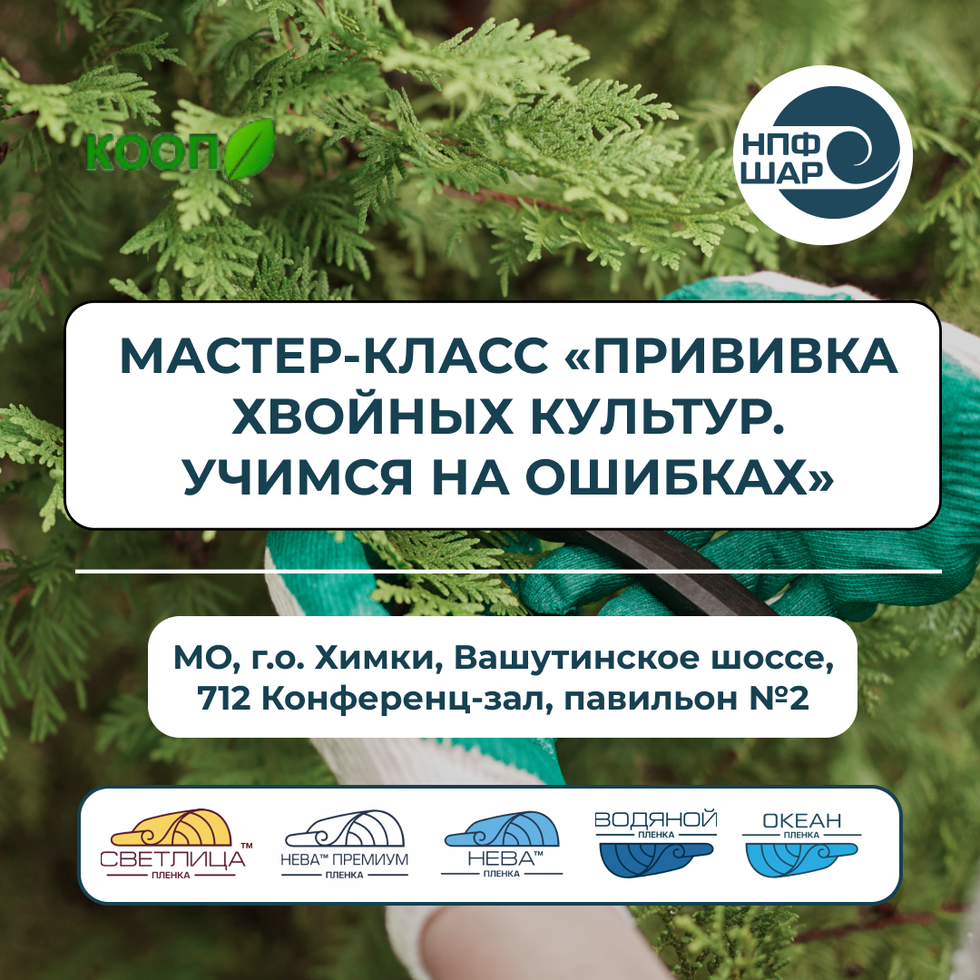 24 октября в рамках выставки состоится мастер-класс «Прививка хвойных культур. Учимся на ошибках», при поддержке НПФ «Шар». Участники смогут больше узнать о современных подходах к прививке растений и особенностях работы с хвойными культурами. Представители нашей компании также примут участие в мероприятии — расскажем подробнее о продукции НПФ «Шар» и ответим на ваши вопросы. 📍 Московская обл., г.о. Химки, Вашутинское шоссе, 712 Конференц-зал выставки, павильон №2 📌 Регистрация: https://clck.ru/3PkHnn