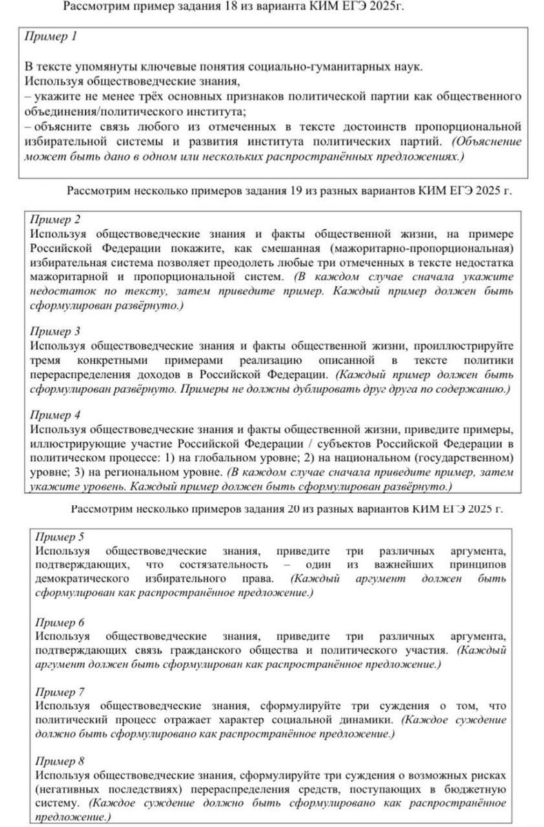 Составители засветили несколько заданий из ЕГЭ-2025 по обществознанию! Прикрепляю их📤 Обязательно научитесь решать задания, вдруг попадут в КИМах на экзамене весной🤯 На курсе я не даю ребятам интернетные задания сомнительного качества. Мы решаем сборники составителей. А ещё я предоставляю эксклюзивные подборки реальных заданий прошлых лет. Благодаря этому: 📌Ученики работают с заданиями, которые максимально близки к тем, что будут на реальном ЕГЭ. 📌 Глубокая аналитика позволяет точечно работать именно с проблемными темами. 📌 Приходя на ЕГЭ, мои ученики видят знакомые формулировки и типы заданий, а значит — меньше нервничают и стрессуют. При этом главное — не просто решить, а полноценно разобрать каждое задание. Мы не ставим галочку. Мы понимаем логику создателей экзамена, чтобы любая задача, даже в новой формулировке, была по силам💪 Хотите также? Жду на курсе🩷