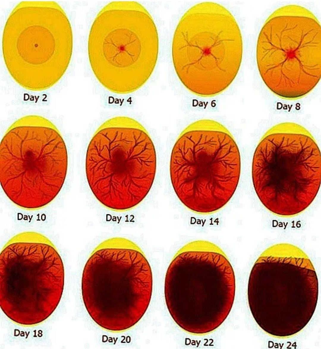 Пуповина у цыплят Недавно в комментариях спрашивали, как развивается цыплёнок, ведь у него нет пуповины. Пуповина есть! И пупок после вылупления тоже есть. Когда развивается зародыш, параллельно с ним идёт развитие сети кровеносных сосудов в яйце. Часть из них окружают желток, часть стелется под скорлупой. И все они сходятся в пуповину. В инкубаторе на 7-10 день производят овоскопирование. Смотрят на яйца в темноте, подсветив фонариком. Тогда эту сеть сосудов хорошо видно. А неоплодотворённые яйца светятся как лампочка. От желтка зародыш получает питательные вещества. Цыплёнок «доедает» его практически перед вылуплением. Иногда не успевает и выходит с желтком, болтающимся на пуповине. Такие цыпы слабые, как правило не жильцы.