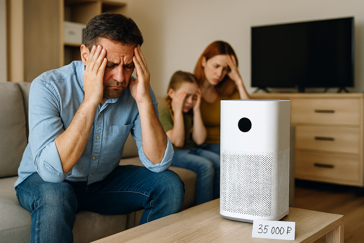 «Купил очиститель Xiaomi за 28 000₽ — HEPA H13, угольный фильтр, все сертификаты. В описании: "удаляет формальдегид". Через 2 месяца жена: "Голова всё равно болит". Замерил прибором: формальдегид 0,15 мг/м³ (норма 0,01!). Позвонил в поддержку: "Меняйте фильтры каждые 3 месяца". Я: "Только купил!" Они: "Угольный фильтр насыщается быстро". Цена замены — 6500₽. Годовые расходы — 26 000₽! Плюс сам прибор 28 000₽. За год — 54 000₽, а формальдегид остался. ДУРЕМОР за 23 000₽: формальдегид 0,008 мг/м³, без расходников. Xiaomi продал на Авито за 15 000₽»