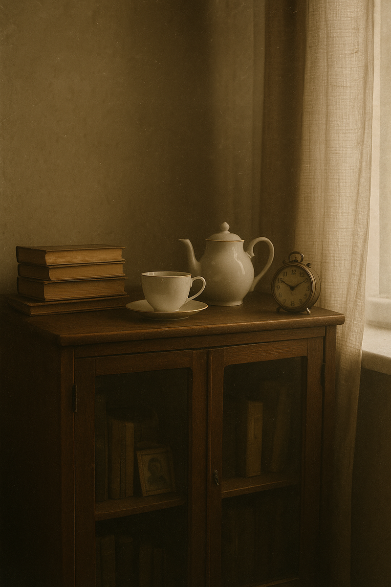 Я стою здесь, на полке. Всё ещё помню. …Он вернулся из армии — высокий, загорелый, пахнущий дорогой и ветром.