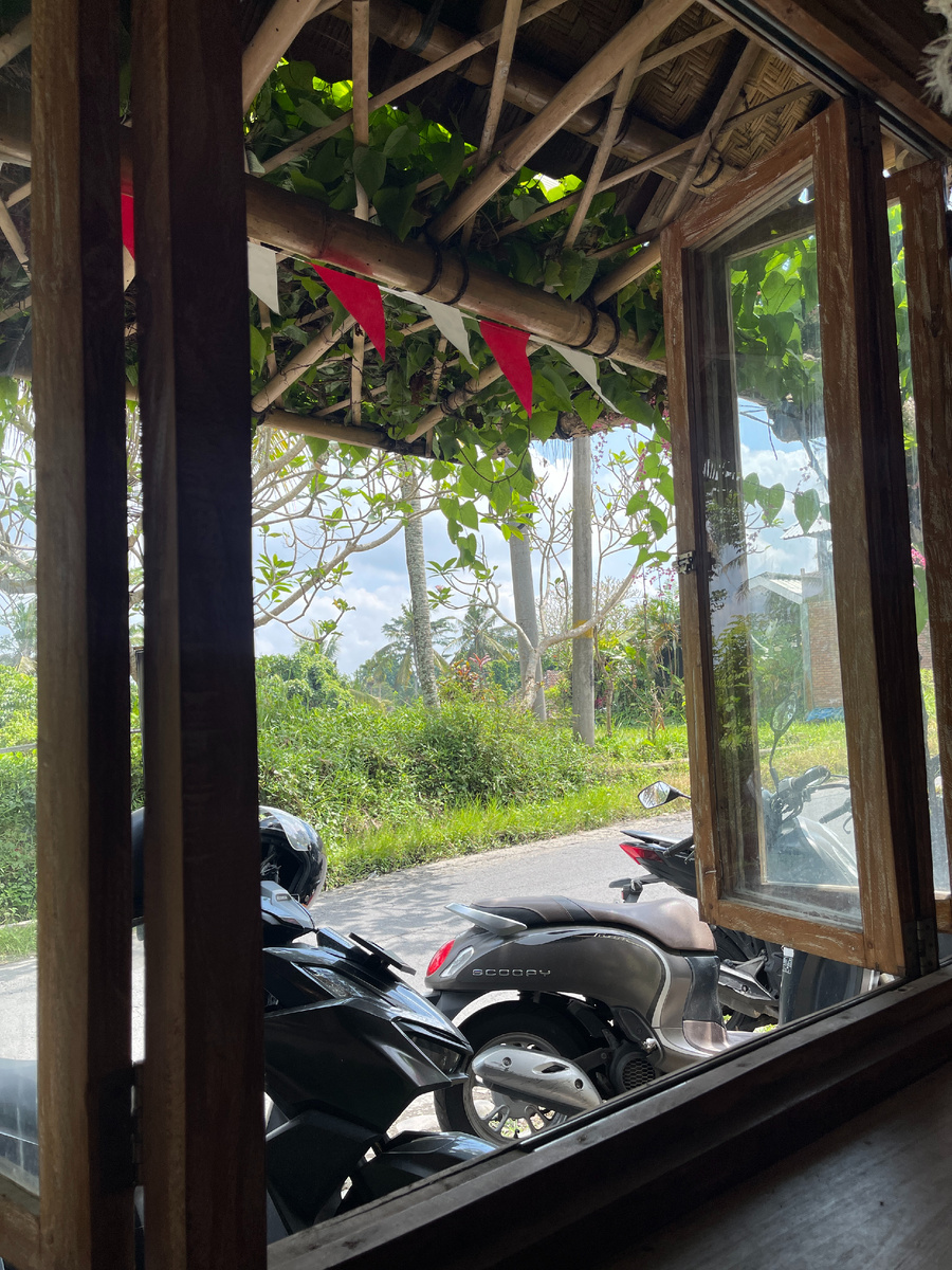 Рассвет в Убуде, где каждый вдох наполнен влажным ароматом земли после дождя, а звуки далеких храмовых колоколов сливаются с пением тропических птиц. Вчерашний переезд из Чангу – с его солеными брызгами океана и уличными серферами – в эту зеленую цитадель искусства и духовности стал настоящим перерождением. Если вы не читали о том пути, обязательно вернитесь к той истории: она раскроет, как Бали меняет ритм, от прибоя к медитации. А сегодня? День посвящен водопадам – этим пульсирующим венам острова, где вода, рожденная в вулканических недрах, несет легенды о богах и очищении. Я превратил это в личное приключение: от утреннего ритуала еды до закатных размышлений на байке. Утро началось с поиска топлива для тела и духа. Заглянув в гугл-карты, я наткнулся на скромное кафе у дороги – место, где балийцы смешивают традиции с современностью. Заказал английский завтрак с поджаристым беконом, жариным яйцами, тостами и помидоры с грибами, смузи-боул с яркими слоями манго, папайи и банана, запи