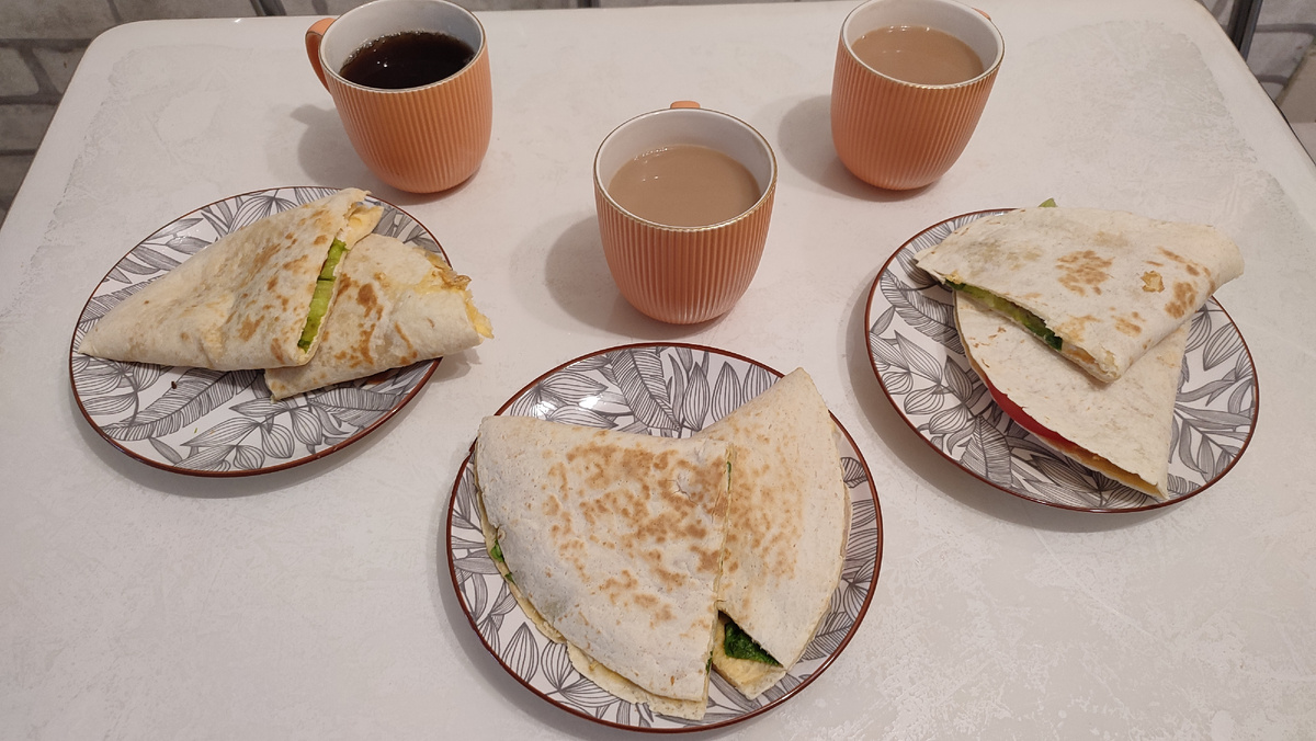 Всем приветик, мои дорогие🤗. Эх, у меня сегодня были такие планы на счёт меню 🤦♀️. Думала приготовлю то-сë, пятое-десятое... Но опять что-то пошло не так. Итак, в понедельник я работала. В принципе, ничего нового. В этот день у меня должен был быть выходной. С утра достала мясо, бёдра и фарш. Думаю, наготовлю... Дочка в садик не пошла. Пока у мужа отпуск, надо сводить её к логопеду. Поехали после обеда, а запись есть только на среду. А я работаю в этот день. Позвонила директору, чтобы предупредить, что на час придётся отойти. Она мне предложила отработать смену сегодня, то есть во вторник. Я согласилась. Всё мясо, которое достала, пришлось убрать в холодильник. На ужин муж приготовил макароны по-флотски. Дочку сегодня отвезли в садик. Но заберу я её до сна, часов в 12. Так как к логопеду запись в 16.00. На завтрак хочется чего нибудь вкусненького. Каши и омлет надоели. Муж поехал в магазин, покупать всё нужное. Взял лаваш, яйца, плавленый сыр, помидоры. Я ж вчера не знала, что