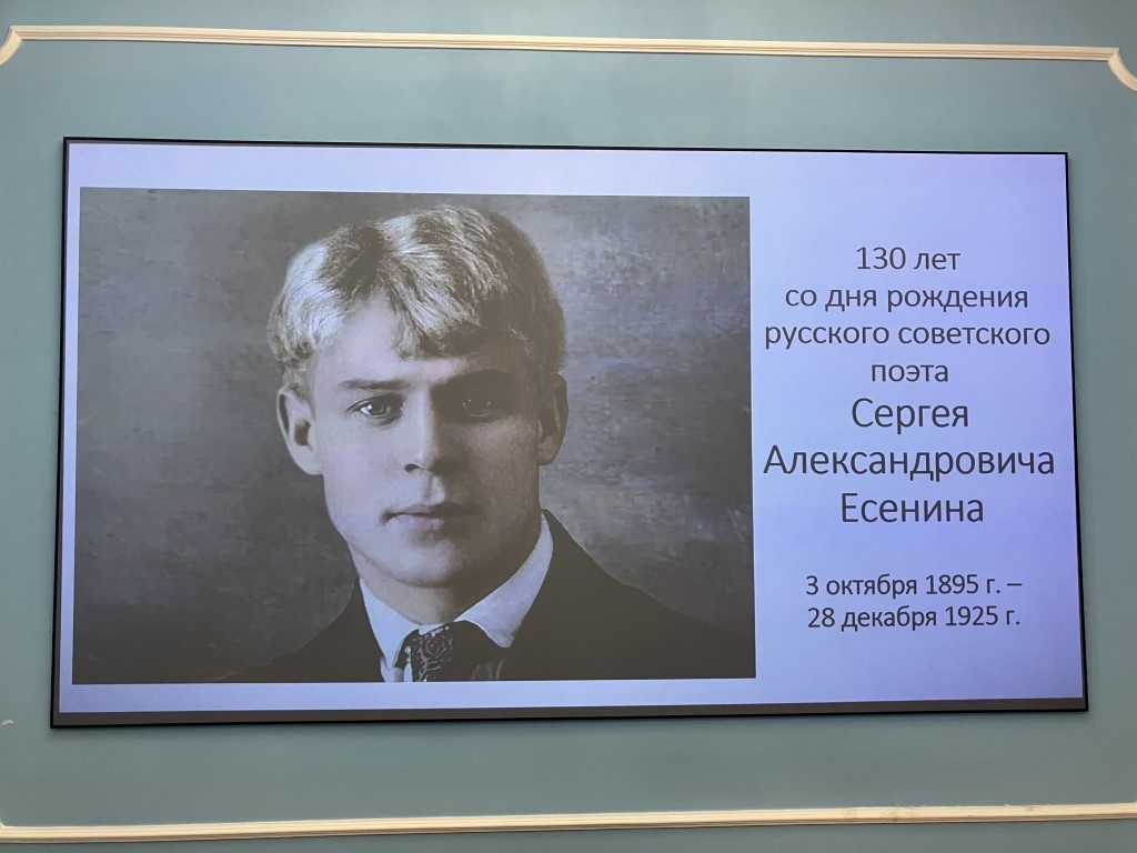 Очередное заседание литературного объединения «Родник» было посвящено 130-летию со дня рождения выдающегося русского поэта Сергея Есенина (1895-1925). Очень интересный доклад сделала Галина Гурченкова, которой посчастливилось поработать экскурсоводом в музее С. Есенина в селе Константиново. Галина Александровна рассказала о семье поэта, об усадьбе родителей Сергея Есенина, церкви Казанской иконы Божией Матери, музее поэмы «Анна Снегина» в усадебном доме последней константиновской помещицы Лидии Кашиной. Галина Гурченкова бережно хранит открытки с автографами сестер великого поэта, вырезки газет с фотографиями музея Есенина. Завершилась встреча смоленских поэтов чтением стихов, написанных в подражание поэзии Сергея Есенина.