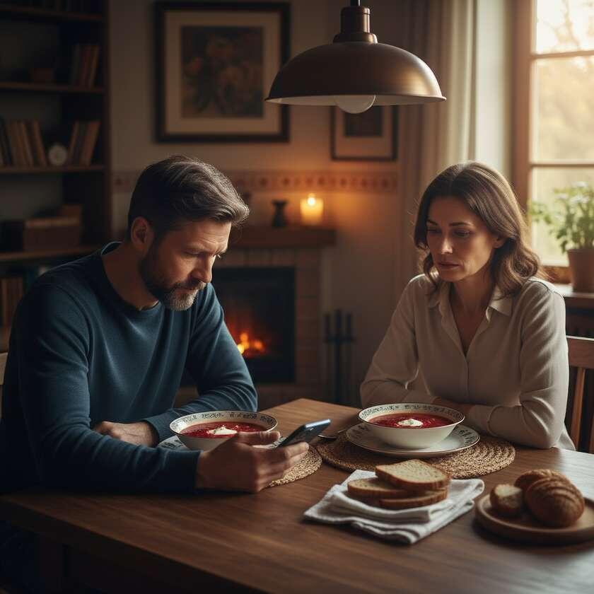 Андрей даже не поднял глаз от экрана. Только чуть сжал губы – значит, услышал. Ольга медленно отложила вилку и посмотрела на мужа. Сорок три года совместной жизни, и вот он сидит напротив неё как чужой человек, утыкавшись в этот проклятый телефон. – Я говорила с Машей сегодня, – продолжила она, хотя понимала: слова повисают в воздухе. – Она хочет привезти внуков на выходные. Андрей кивнул, не отрываясь от экрана. Большой палец быстро листал ленту новостей. Опять эти бесконечные комментарии под роликами, – подумала Ольга с горечью. – Лёшке уже семь, представляешь? А ты в прошлый раз так и не успел с ним в футбол поиграть. – Угу, – отозвался муж, наконец подняв глаза. – Прости, что ты сказала? Ольга почувствовала, как внутри что-то сжимается. Не злость даже – усталость. Когда они стали такими далёкими? Когда ужин превратился в молчаливый ритуал, где каждый сам по себе? – Ничего важного, – тихо ответила она и снова взялась за ложку. Борщ остыл. Как и многое другое в их доме. – Слушай, а т