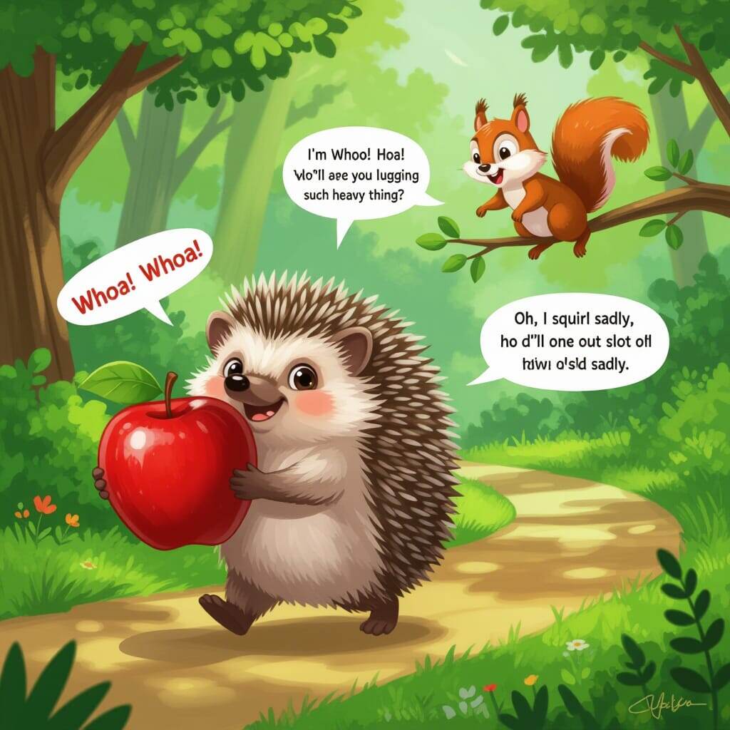 Тяжело было нести такое большое яблоко. Идёт Ёжик, пыхтит: «Ух! Ух!»
