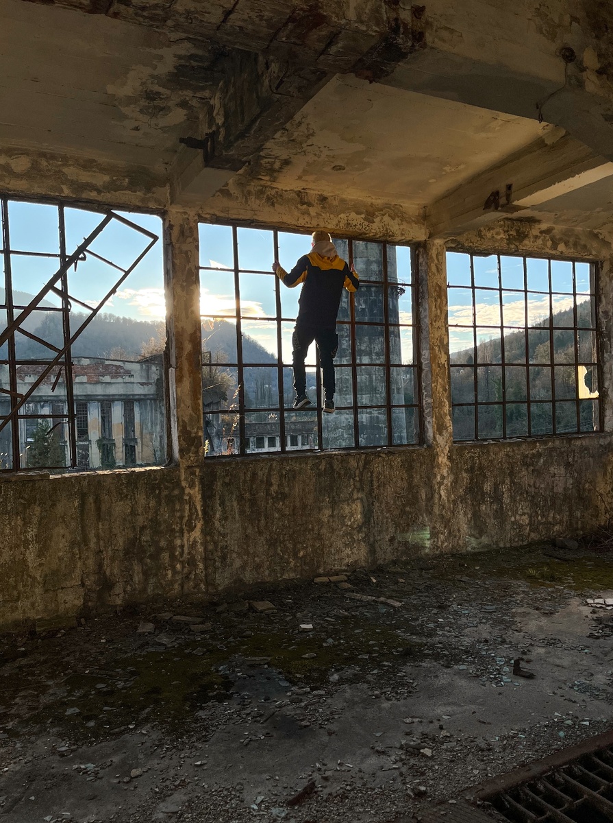 В этой статье расскажу вам про одну из самых масштабных заброшек Абхазии. ГРЭС — Государственная Районная ЭлектроСтанция. Электростанция получила своё название от города неподалёку (Ткуарчал), который спроектировали пленные немецкие архитекторы и инженеры во время войны. Станция добывала уголь и обогащала его. Высота труб около 150 и 200 метров. Сделать такими невероятно высокими их пришлось из-за нахождения завода в ущелье, чтобы дым не задерживался тут. Охрана на территории есть, но пересечься с ней практически невозможно. Имеется несколько свободных входов прямо со стороны главной дороги. Первый залаз напротив более низкой трубы, где ворота. Можно перелезть их, но чаще всего в левой части отсутствует часть забора, и через эту дыру легко подтянуться и спрыгнуть. Второй залаз между двумя башнями еле заметный, в заборе есть квадратное помещение, внутри которого большое окно, ведущее прямо на территорию. В высокую трубу во время войны 92-93 годов попал снаряд, оставив дыру диамет