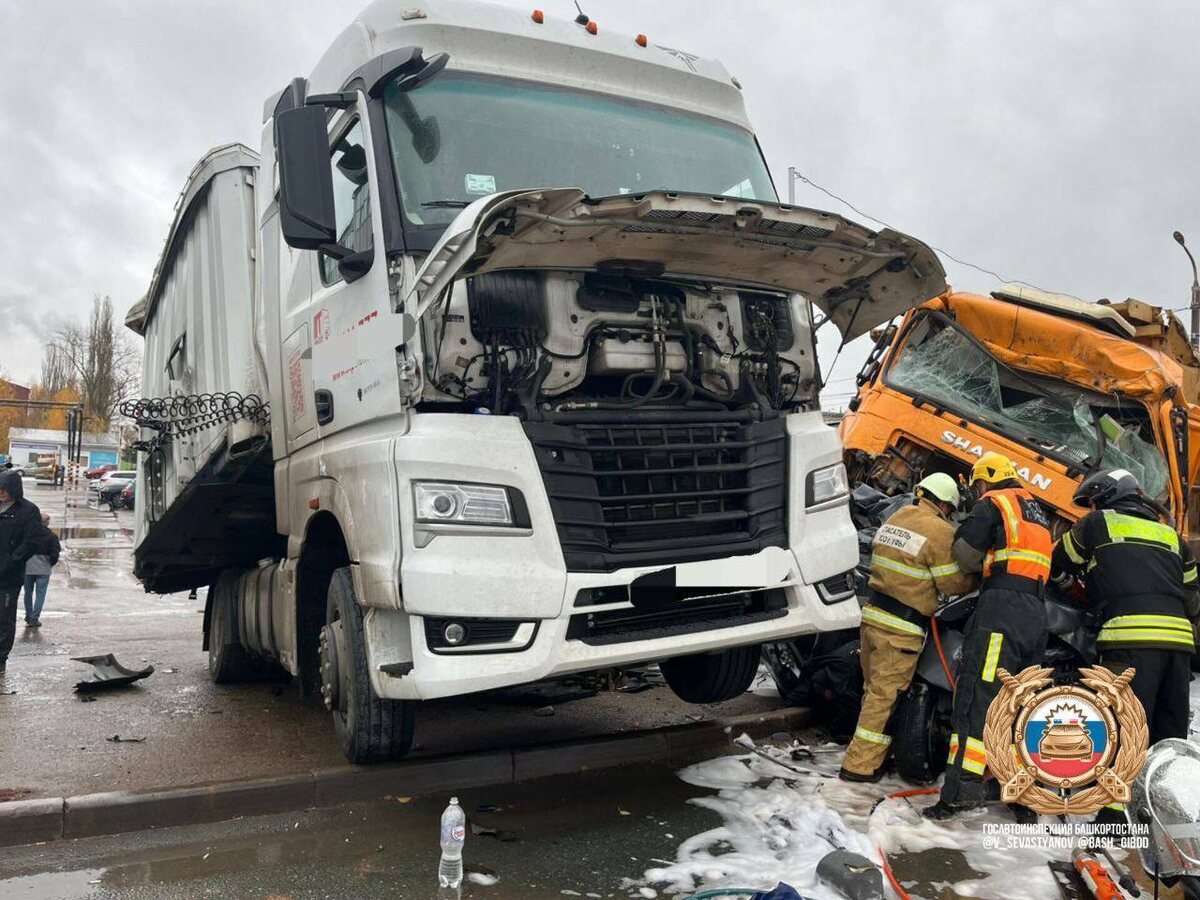 У большегруза «Шахман» отказали тормоза. На скорости он столкнулся с 11 движущимися машинами. ДТП произошло в Уфе на пересечении улиц Новоженово и Уфимское шоссе. По предварительной информации, у большегруза отказали тормоза, из-за чего на скорости он допустил столкновение с 11 автомобилями. «Произошло массовое дорожно-транспортное происшествие с участием 12 автомашин: 10 из них легковые, две — грузовые. В результате ДТП погибли два взрослых человека из легкового автомобиля», сообщил в видеоролике в соцсетях начальник УГИБДД МВД по Башкирии Владимир Севастьянов. Информация по количеству пострадавших уточняется. На месте ДТП работают сотрудники МЧС России, медработники и эксперты главного следственного управления МВД по РБ. Фото и видео из ТГ-канала Владимира Севастьянова